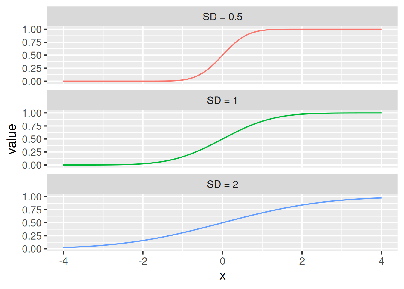 "SD = 0.5" = pnorm(x, sd = 0.5),